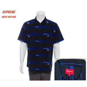 Supreme Striped Racing Work Shirt Black White & Cobalt Blue F/W 2018, Med, AUTHE