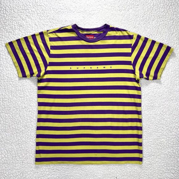 Streetwear - Skate Culture - Supreme Striped T-Shirt Mens Medium, Purple & Yellow