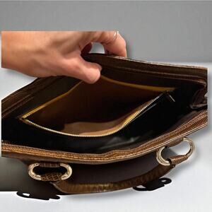 Includes two zippered compartments and one interior zip pocket. Pre-owned and well-maintained—light wear from age, but no major flaws. A rare, timeless accessory that was made to last.