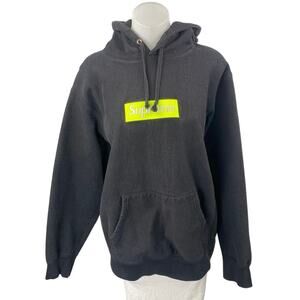 Supreme Women's Black Logo Embroidered Hoodie Hooded Sweatshirt Top Size L