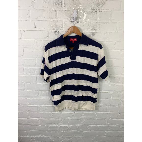 Supreme Women's Striped Ribbed Knit Polo Shirt Short Sleeve Blue/White Size M