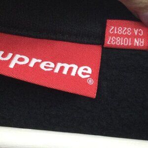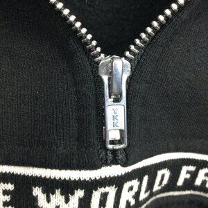 “World Famous” quarter zip sweater sweatshirt from Supreme. From there 2016 fall/winter line. Black with front zip, logo across the front. Black and white. Some wear but in good used condition. Pull-over style and ribbed edging. See photos. This style is no longer available in stores.