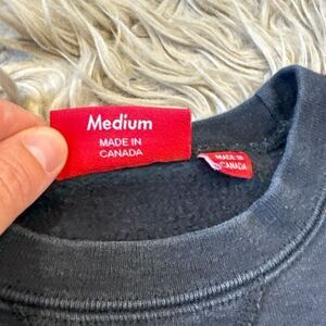 Supreme Zig Zag Stitch Panel Crewneck sweatshirt Black Size medium. Has a bleach mark on the back of one sleeve as pictured.