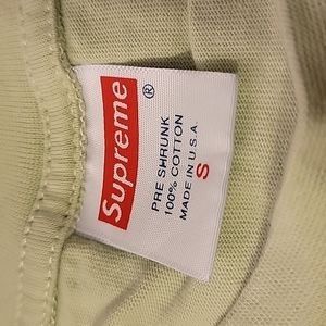 Light green with red box stitching...never been worn. It could possibly be unisex but sleeves are slightly cupped....has the Supreme logo that appears on back of tag.