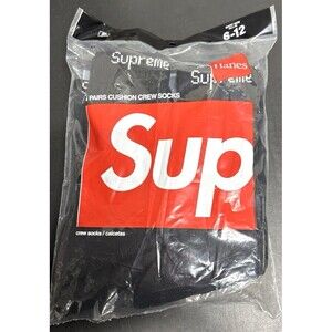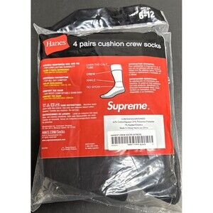 Supreme x Hanes Socks 4 Pack Black Mens Size 6-12 Crew Socks Brand New Sealed