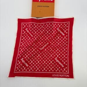 Supreme x Louis Vuitton LV Monogram Bandana Scarf Red 100% Authentic