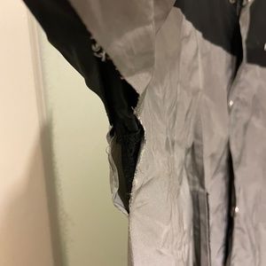 This is a Supreme x North Face reflective silver waterproof jacket. It is not parka-weight it's more like a windbreaker, but looks identical to the Supreme x North Face 3M Mountain Parka. Tag says size L but fits like a men's small. There is a tear under the right armpit in the outer shell, which is not visible when worn and could easily be fixed. There is also a snap missing but the internal hardware is intact meaning it could be fixed as well. Ngl the inside label says Supreme, but other items from this collection have a label that specifically says "Supreme x North Face" - regardless, it's a cool design and seems rare. I've seen listings for the parka on Ebay for upwards of $1000. Letting this go for way less because I copped for free, can't verify the style number, and aforementioned light damage.