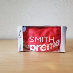 Limited edition collaboration between Supreme NYC and Smith Optics. Goggle model is "Cariboo OTG," all Smith OTG models may be worn over prescription eyeglasses. Item is new in box, never worn, with all original tags and packaging.