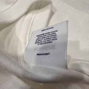 This collaboration between Supreme and legendary designer Yohji Yamamoto blends minimalist branding with premium quality. The clean white tee features understated logo detailing, making it a perfect staple for collectors and fans of high-fashion streetwear.