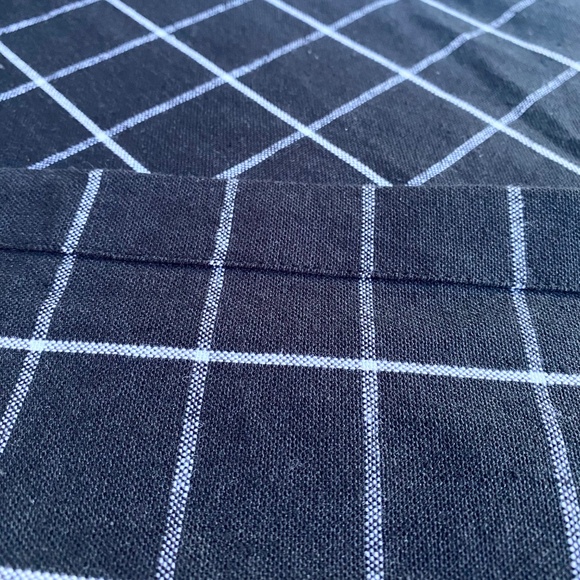 Timeless and versatile Sur La Table table runner, featuring a black base with a fine white windowpane grid pattern.