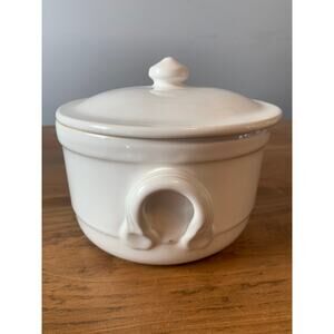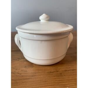 Sur La Table Round Covered Baking Dish White Serving Dish Soup 6" Diameter