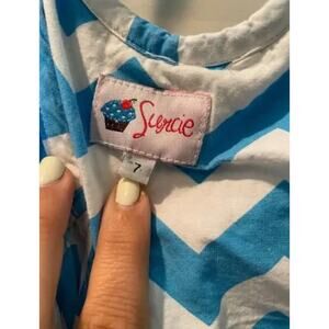 Surcie Smocked Chevron Mermaid Dress Excellent condition! Size 7 Blue and White