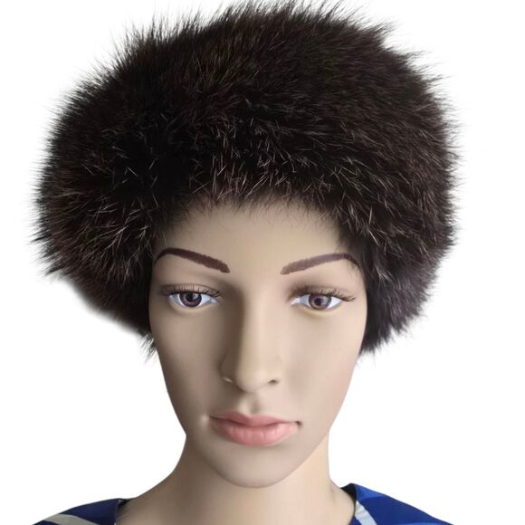 Surell Finland Genuine Brown Fox Fur Headband Scarf Hat Adustable Two In One