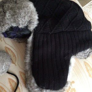 Knit Trooper Hat w/Rabbit Fur