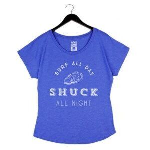 More puns and if you love oysters this is a must!! What better color to represent surfing and shucking than blue! Size S
