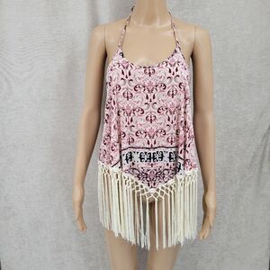 Surf Gypsy Bohemian Fringe Halter Top NEW Women's Size Large