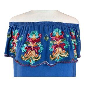 Surf Gypsy Colorful Floral Embroidered Off-The-Shoulder Dress/Swim Cover Up Med