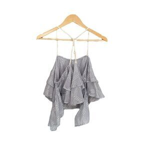 New with tags Surf Gypsy tiered crop tank top with silver dotted design. Cross back adjustable strap. 19” across bust laying flat and 13” armpit to hem. One small hole (see photo) that is nearly invisible because it looks like one of the silver dots.