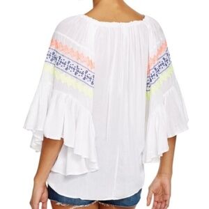 Surf Gypsy Neon Embroidered Peasant Blouse Size Small NWT