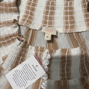 Surf Gypsy Tan and White High Waist Striped Shorts