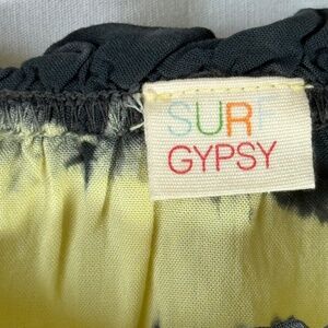 Surf Gypsy Yellow/Black Tie Dye Bell Sleeve Crop Top Sz M