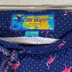 Surf Society Blue Print Pink Flamingo Swim Trunks size XL