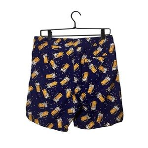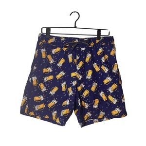 Surf Society Swim Shorts Beer Print Drawstring Waistband Mesh Lined Blue Medium