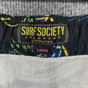 Surf Society Swim Shorts Men's Large Black/Multicolor Doodle AOP Party Beach