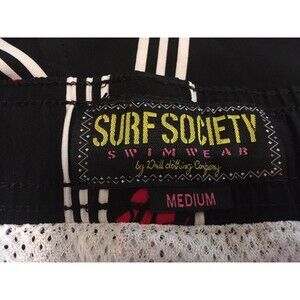 Surf Society mens Swim Trunk size Medium Black Stripe Roses Swim Short 7" inseam
