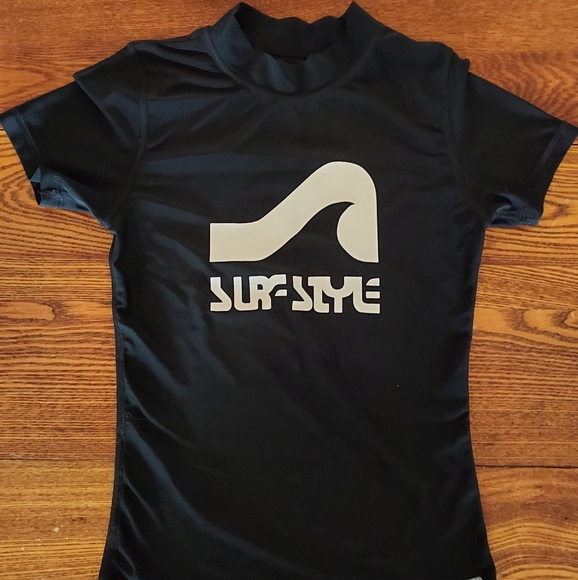 Surf Style brand boys rashguard. Size 10/12, 85% Polyester and 15% Spandex, UPF 60+. From a smoke-free home.