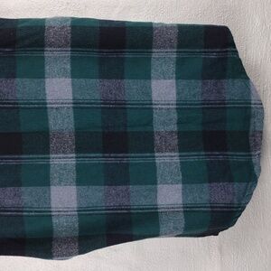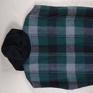 Surf Style Interplanetary Body Gear Men's Green Black Gray Windowpane Plaid Hooded Six Snap Up Front Sleeveless Flannel Shirt Jacket Vest. One Open Chest Pocket. Size S/M Color May Vary Due To Lighting.