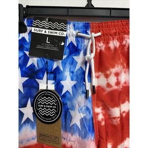 Surf & Swim Men’s Volley Swim Shorts US flag Out Tie Dye Red Size L