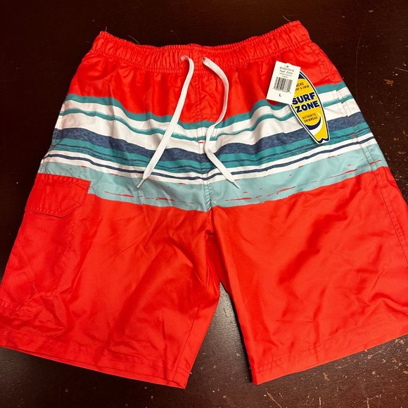 Surf Zone Mens Orange Elastic Waist Pockets Authentic Swimwear Shorts Size Large