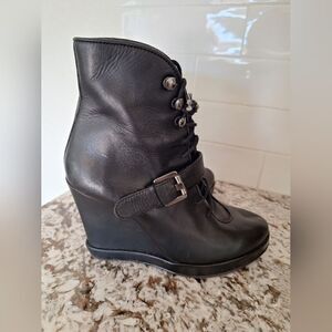 Surface to Air Anthropologie Black leather wedge boots size 38