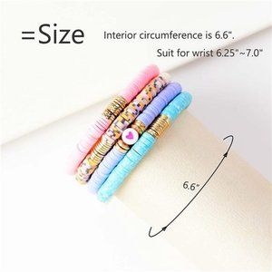 【STACKABLE BEADED BRACELET SIZE】: Colorful Flat surfer bead bracelet is made of 6mm African vinyl disc beads and elastic string hand-beaded. It is easy to wear and take off. The bohemian bead bracelet is about 6.6inches, which is the size suit for most girls' wrists. And it's elastic stretchy, so don't worry if it's right for you.