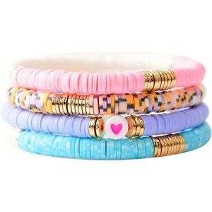 Surfer Heishi Clay Bead Bracelets for Women Bohemian Stackable Evil Eye Vinyl