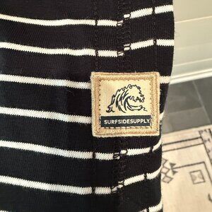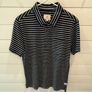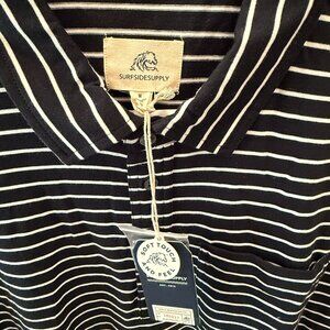Selling a brand new Surfside Supply Men's Black and White striped polo shirt. Retails for $70.