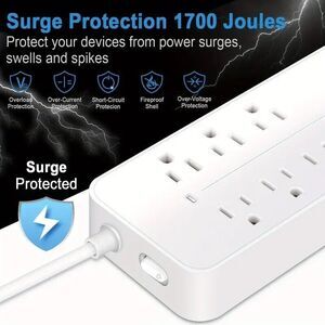 Ensure your devices are protected with our versatile Surge Protector Power Strip, featuring 8 AC outlets and a robust 4-foot power cord. Ideal for use in both indoor and outdoor settings, this white power strip is designed with a fireproof ABS + copper build, guaranteeing safety and durability. With a maximum input current of 10A and a surge energy capacity of 1700 J, it safeguards your electronics from power surges and spikes. The unit includes 3 standard USB ports and 1 USB-C port, allowing you to charge multiple devices simultaneously. The 45° angled flat plug ensures easy plug-in and compatibility with a wide range of appliances up to 1501-2000 W. Additional features like overload protection and the ability to mount on the wall make it a practical choice for powering up your devices. NEW
