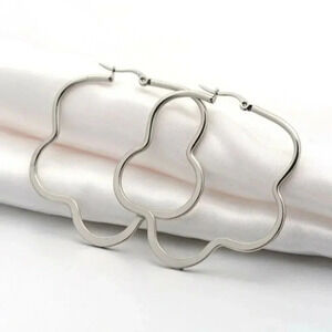 Surgical Stainless Steel 38mm Sleek Flower Hoop Earrings Avant Garde 304 Grade