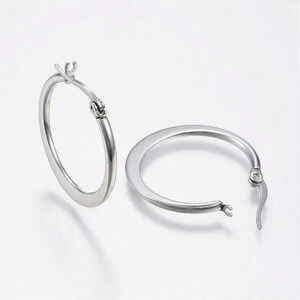 Surgical Stainless Steel Bladed Round 26x25mm Silver Hoop EarringsPremium quality found in high end department stores and boutiques304 grade surgical stainless steel earringsShape: roundStyle: modern bladed hoopLength: 26mmWidth: 25mm