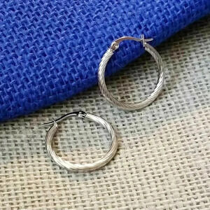 304 Grade Surgical stainless steel earringsQantity: one pairShape: round Style: twisted hoopMeasurements: about 2.5mm thick, 26mm long, 25mm wide