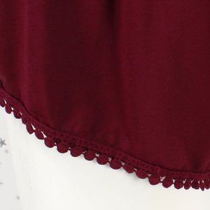 Surplice Lace Pompom Cami Romper Burgundy