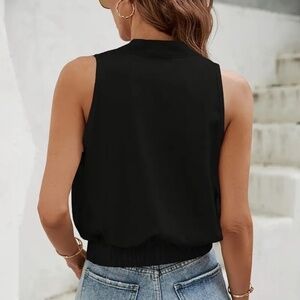 Chic tie-front surplice neck tank top. An elegant sleeveless, pleated front design, and tie at the waist. Great for any season. 100% polyester.
