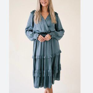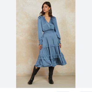 Surplice Ruffled Tiered Midi Dress Current Air Los Angeles Size M