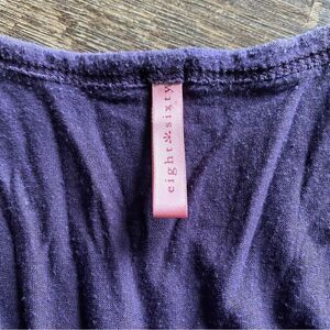 Eight Sixty Surplice cross front top in beautiful purple. Plus size 1. Versatile top: easy to dress up or wear casual. Please see photo section for approximate flat measurements + light piling throughout from use. Note: there is no material tag in this top. It is a soft stretchy material.