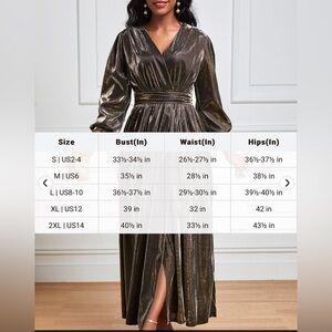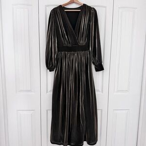 Surplice V Neck Dark Coffee Maxi Dress Size Large US 8-10
