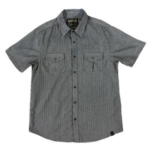 Surplus Men Button Up Gray Short Sleeve Striped Shirt Size Large