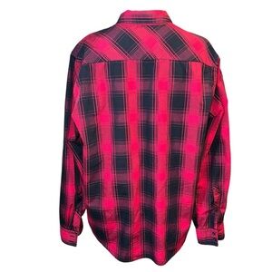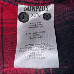 Surplus Men’s Long Sleeve Collared Shirt XL Red & Black Plaid 60% cotton