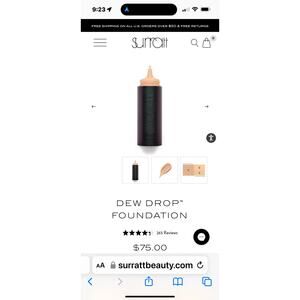 Surratt Beauty Dew Drop Foundation Natural Seamless Medium / Beige 6.5 NWT. This light-to-medium coverage foundation has a dewy, hydrating finish that’s ideal for everyday wear. Its unique delivery system ensures your complexion receives the optimal amount of coverage each time you apply. For optimal results, depress the dropper to dispense 1-2 measured drops of foundation on the back of your hand. Start applying in the center of the face, where uneven skin tone is often the most apparent, or on any areas that need coverage, and blend outward onto the forehead, nose, and chin. We recommend using a brush with dense bristles, like our Artistique Foundation Brush. 0.64oz / 19ml. beauty, makeup, foundation, natural, lightweight, seamless, beige, dew drop, winter, summer, spring, fall, glowy, medium coverage.