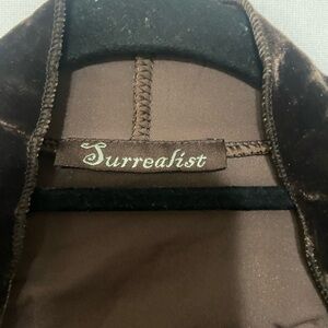 Surrealist EUC brown velvet open front cardigan with applique floral size 4